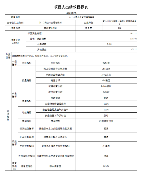 附件:黄山市地方海事(港航)管理服务中心2025年度项目支出绩效目标