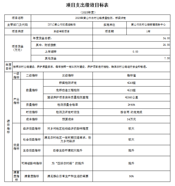附件:黄山市农村公路管理服务中心2025年度项目支出绩效目标