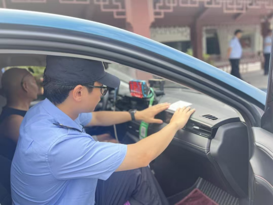 在祁门高铁南站出租车候客通道,“执法蓝”正以多元姿态流动。祁门县交通执法队员们在维持候客秩序时,主动化身志愿服务者,俯身为一辆辆出租车粘贴醒目的“一祁玩”旅游二维码。不仅以严格执法规范运营行为,更化身祁门旅游“活名片”,向南来北往的乘客热情推介,“扫描这个码,祁门的好山好水、红茶古村都‘码’上知道!”同时细致讲解当地特色美食与核心景点。这一“执法+服务”的暖心举措,既让出租车运营秩序更规范,又为游客提供了便捷的旅游指引,每一辆出租车都成为流动的祁门宣传站,赢得司机与旅客的双重点赞。
