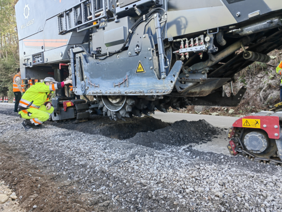 精准打通行业发展堵点。“全深式水泥面板再生技术”专业机械设备依次完成旧水泥路面破碎、就地拌和、摊铺及碾压等工序,仅用2小时便完成改造再生成水稳基层,实现三大突破性升级:一是旧水泥面板就地回收利用,从源头杜绝废料污染;二是大幅减降低综合成本;三是缩短工期约50%,最大限度减少交通与环境的影响。