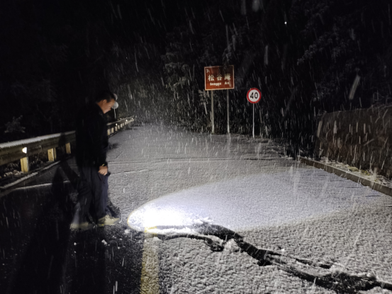 二是昼夜坚守,不间断巡查监测。组建由党员领导干部带头的应急抢险小分队,自凌晨3时起,对景区旅游公路主线及坡道、弯道、桥梁、涵洞等重点路段开展高频次、不间断巡查,实时掌握路面雪情、结冰及通行状况,确保第一时间发现并处置安全隐患。