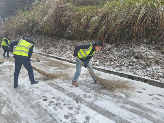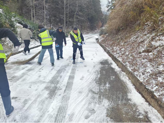 经过两个多小时的连续奋战,棍子岭结冰路段全部清理完毕,融雪剂均匀覆盖易结冰区域,受阻道路恢复安全通行。党员干部们还对路段进行了全面巡查,重点排查临水临崖、急弯陡坡等高危点位,确保无遗漏安全隐患。