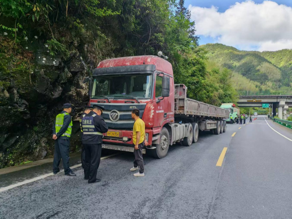 4月30日上午,休宁县交通运输局联合黄山市交通执法支队直属五大队、浙江省开化县交通执法队及休宁县公安交管大队,在G205国道休宁县龙田乡桃林段开展跨省空地协同全链条打击货运车辆超限超载专项行动。