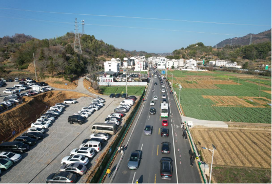 面对这一压力,歙县公路分中心未雨绸缪,早在节前就对S347线瞻淇段春节假期可能出现的超大车流和人流做出科学预判,并提前部署应对措施。分中心加强与地方政府、交管部门协调联动,鱼灯巡游活动启动前,由交管部门发布临时交通管制公告,引导本地车流绕行,主动“让路于客”。同时,将年前刚刚完工的拓宽车道临时隔离为人行通道,最大限度保障密集车流中行人的通行安全。