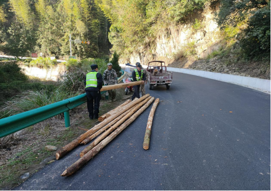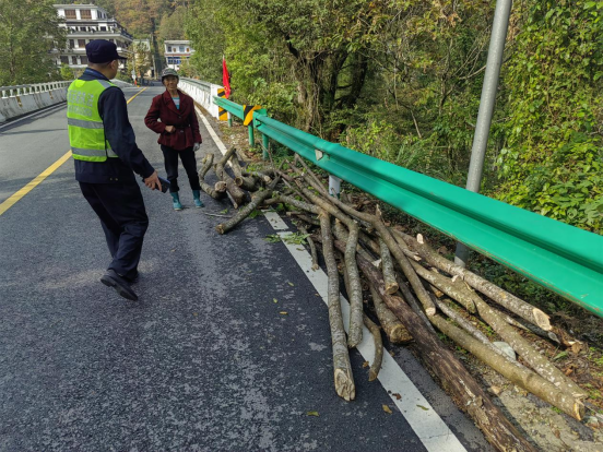 入冬以来,随着近期晴好天气,市交通执法支队直属三大队辖区祁门、黟县国省干线沿线村民开始大量砍伐树木,大量木材随意堆积在公路沿线路肩及水沟之上,极易引发交通事故。为切实守护群众出行安全,直属三大队以“清除路障保畅通、强化宣传提意识”为抓手,走村入户多向发力,全面筑牢冬季公路安全防线。