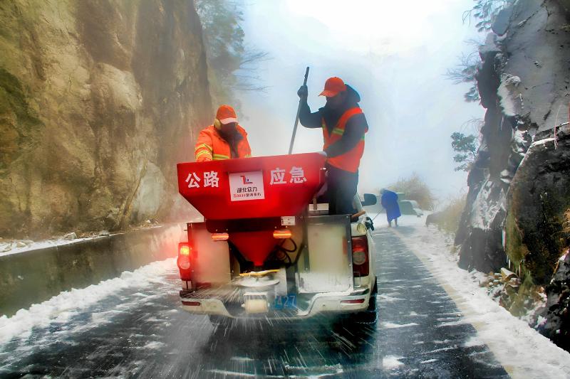 为保障公路安全通行,该中心及时启动冰雪天气公路应急抢险保障预案,组织抢险人员兵分三路冒雪开展铲冰除雪抢险。抢险人员通过机械和人工相结合,采取撒融雪剂和人工机械清除冰雪的方法尽快清除路面冰雪,为民众营造安全通畅的通行环境。抢险人员还对2辆受阻车辆进行排险护航,使之安全通过越岭受阻路段。据了解,当天共投入抢险人员40多人、撒布机1台、装载机1台、抢险车辆5辆、融雪剂4吨。截止发稿时,除雪抢险工作仍在持续中,各越岭路段车辆可缓慢通行。(曹集林、 朱勇峰)
