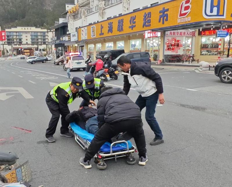危急时刻,执法人员没有丝毫犹豫,立即靠边停车、迅速下车处置。他们第一时间从巡查车上取出安全标识,快速在事故现场周边摆放,划定安全区域,一边示意过往车辆减速避让、有序通行,耐心疏导现场交通,有效防范了二次事故的发生;一边快步来到伤者身边,轻声安抚伤者情绪,同时迅速拨打110报警电话和120急救电话,详细说明事故地点、伤者情况,等待专业救援力量赶来。片刻后,120救护车呼啸而至,执法人员立即主动上前,与医护人员默契配合,小心翼翼地将伤者抬上救护车,为伤者争取了宝贵的救治时间。看着救护车鸣笛驶向市医院,执法人员悬着的心才稍稍放下。