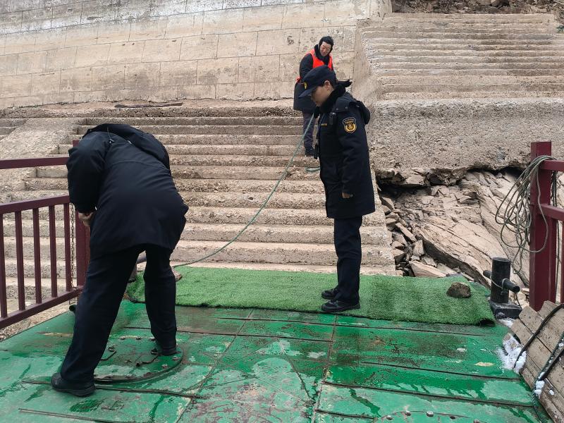 风雪无阻,织密现场防控“防护网”。凛冽寒风中,执法人员的身影穿梭在各个码头渡口,顶风雪、踏寒冰,加大巡查频次与密度。执法人员协助渡工、船员提前铺设防滑设施,清扫甲板积雪、浮冰,提醒船员做好甲板防滑和设备防冻维护,叮嘱作业时规范穿戴救生衣。对船舶机电设备、救生消防设备进行全面检修,排查低温故障隐患,坚决杜绝“带病”航行。