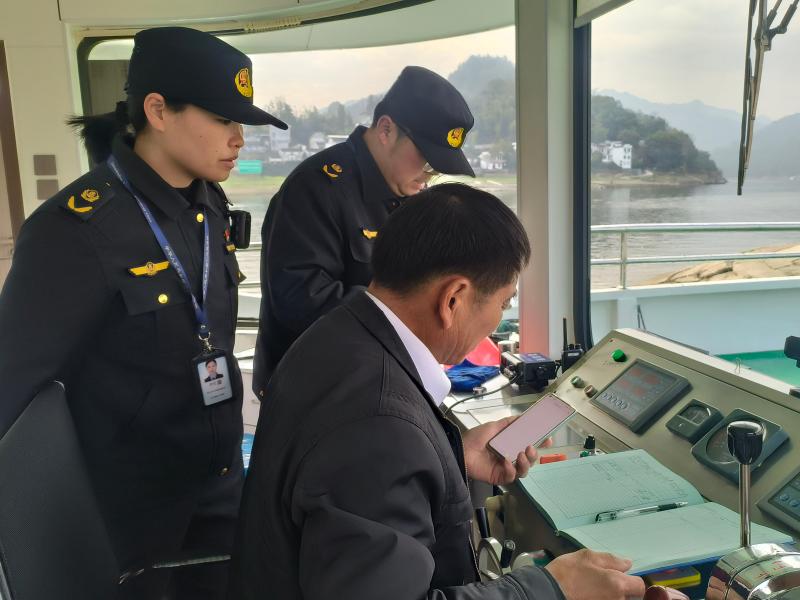 把安全责任扛在肩上。节日期间,聚焦重点领域,持续加大安全监管力度。针对节前“2.17”涉客船舶倾覆事故教训,迅速组织水运企业开展警示教育,督促深刻吸取教训,压实主体责任。执法人员深入徽州城北客运站、黄山速通物流有限公司等重点企业,检查安全生产措施落实情况,严防散酒、烟花爆竹等危险物品进站上车,督促危化品运输企业落实重大危险源提级管控。在深渡港区,执法人员严格执行值班值守,检查渡船渡运安全,并通过视频巡查等方式,确保水上交通形势稳定。春节期间,直属四大队还联合海事部门开展巡航,重点检查桥区水域防碰撞设施及航道通行情况,对6艘营运船舶进行现场监督检查,保障了水路运输安全。