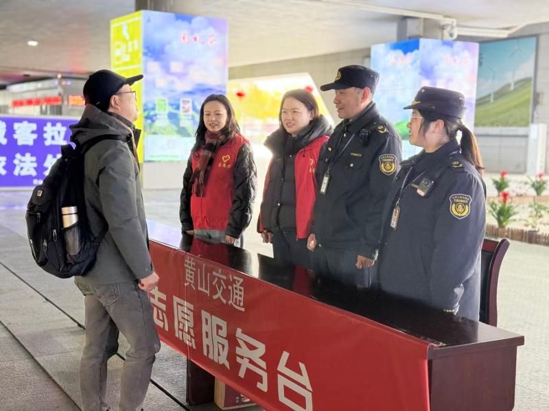 把群众需求放在心上。 坚持“执法+服务”理念,在严格执法的同时,不断延伸服务触角。在黄山北站,自2月14日起执行“N+1”值班模式,每日安排24人次进行白夜班轮值。执法人员在出站口、出租车上客点等关键区域,积极引导旅客有序换乘,为老弱病残孕等群体开通“绿色通道”,协助搬运行李,提供信息咨询,确保旅客高效便捷离站。在呈坎、西溪南等景区,执法人员加强巡查,维护旅游秩序,接受游客咨询。春节期间累计接受群众咨询200余人次,发放水上安全宣传单页50余份,用暖心服务为旅途增添温度。