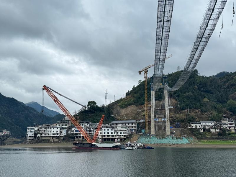 —黄山交通运输执法护航歙县小川大桥首片钢箱梁顺利吊装