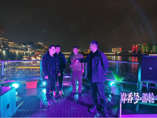 智慧监管为安全护航添翼。黄山海事联合文旅部门搭建智慧水上监管平台,在夜游航线全域布设20余处高清监控点位,实现船舶航行、码头客流、江面秩序全时段可视化监控,搭配船舶AIS定位系统,实时监测航速、航线,对违规航行行为自动预警。同时深化“靠前服务、帮扶指导”机制,对4艘夜游船开展全方位技术指导与安全排查,重点督促3艘在航船舶及1艘新能源船舶做好维保与合规运营,整改消防、救生等安全隐患21处,隐患整改闭环率达100%。严格落实船员持证上岗、船舶适航,筑牢水上安全防线。